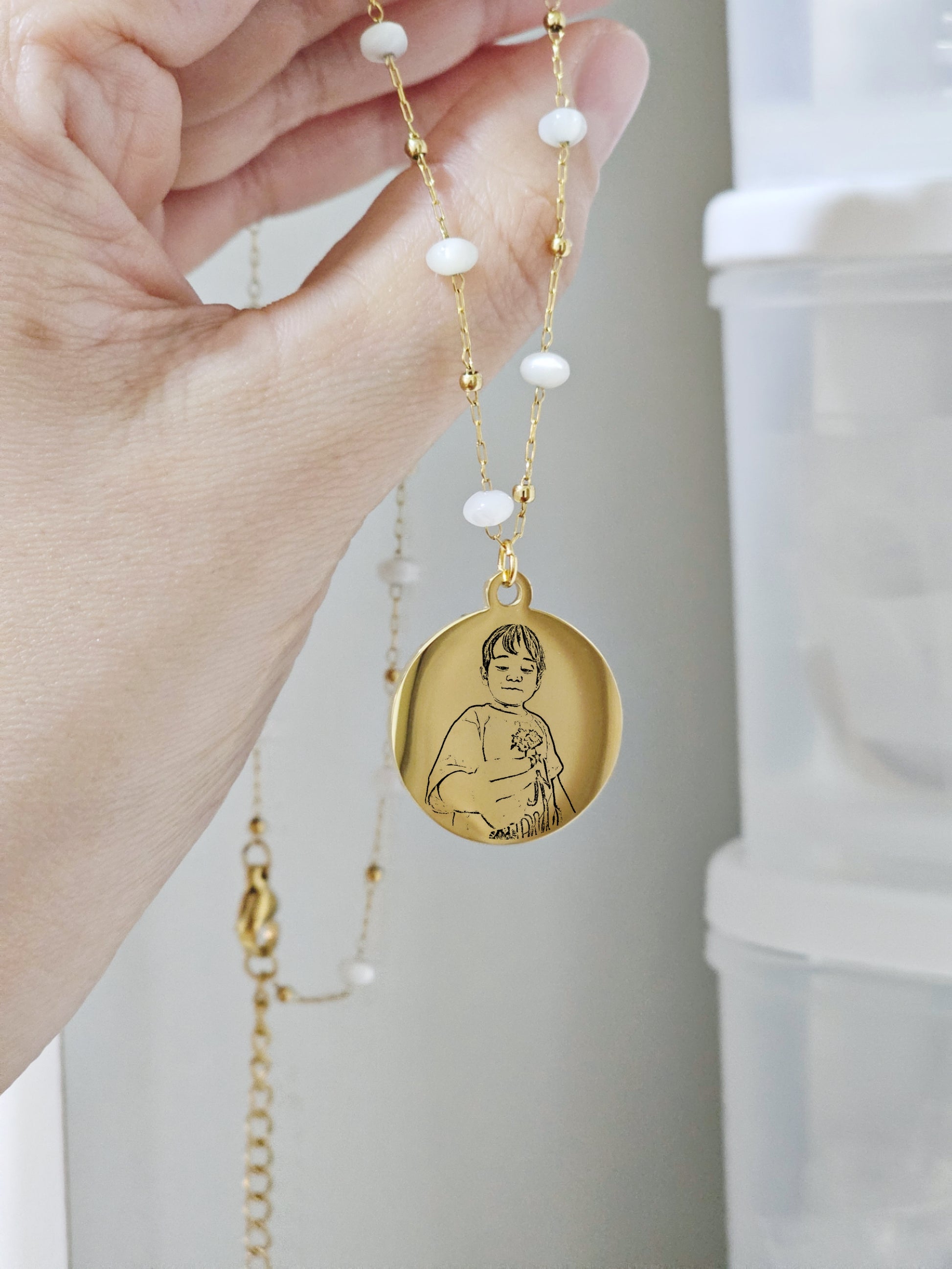 Collar de perlas nacar para retrato