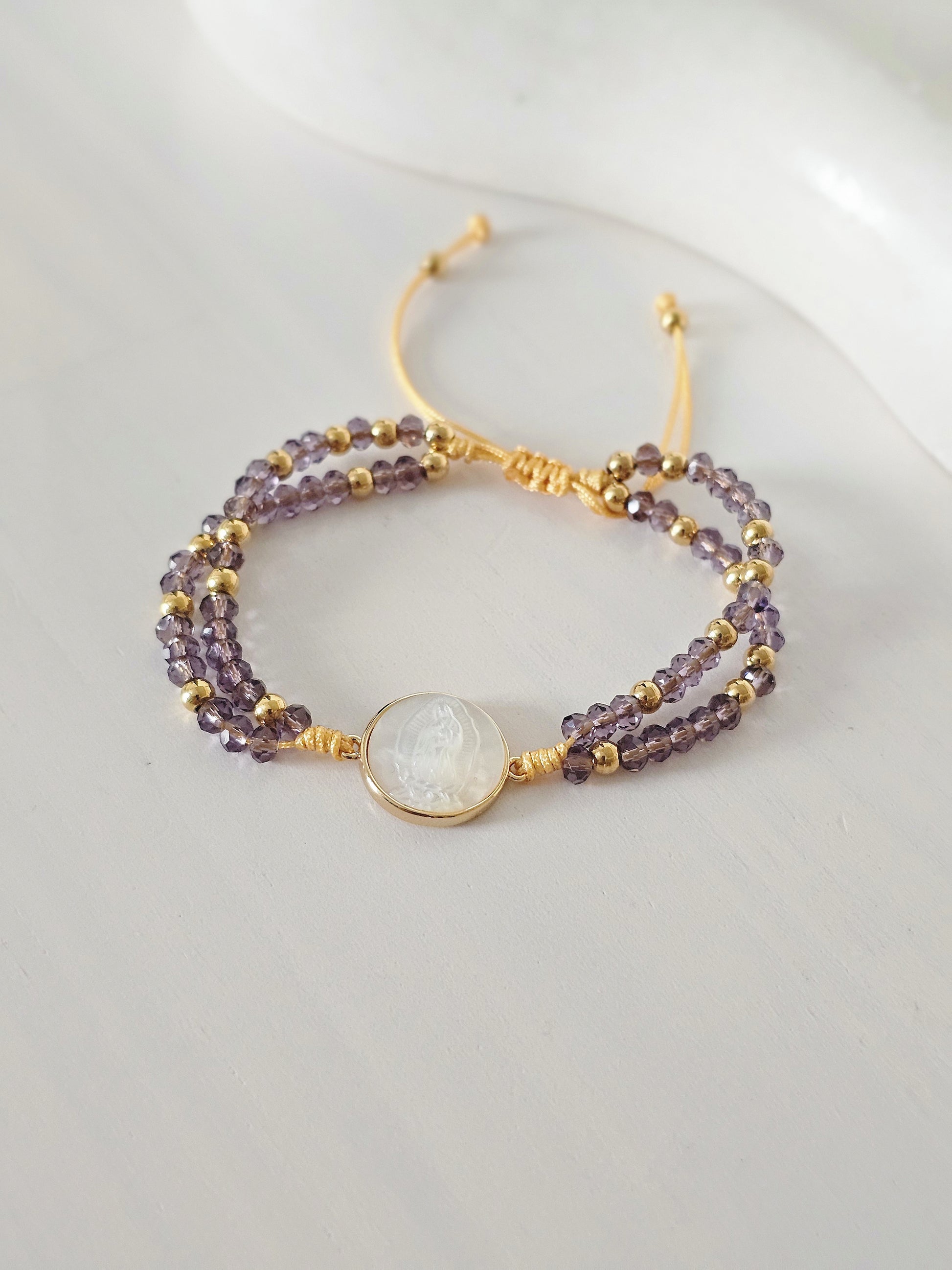 Acero inoxidable - cristales - dije en goldfilled y nacar