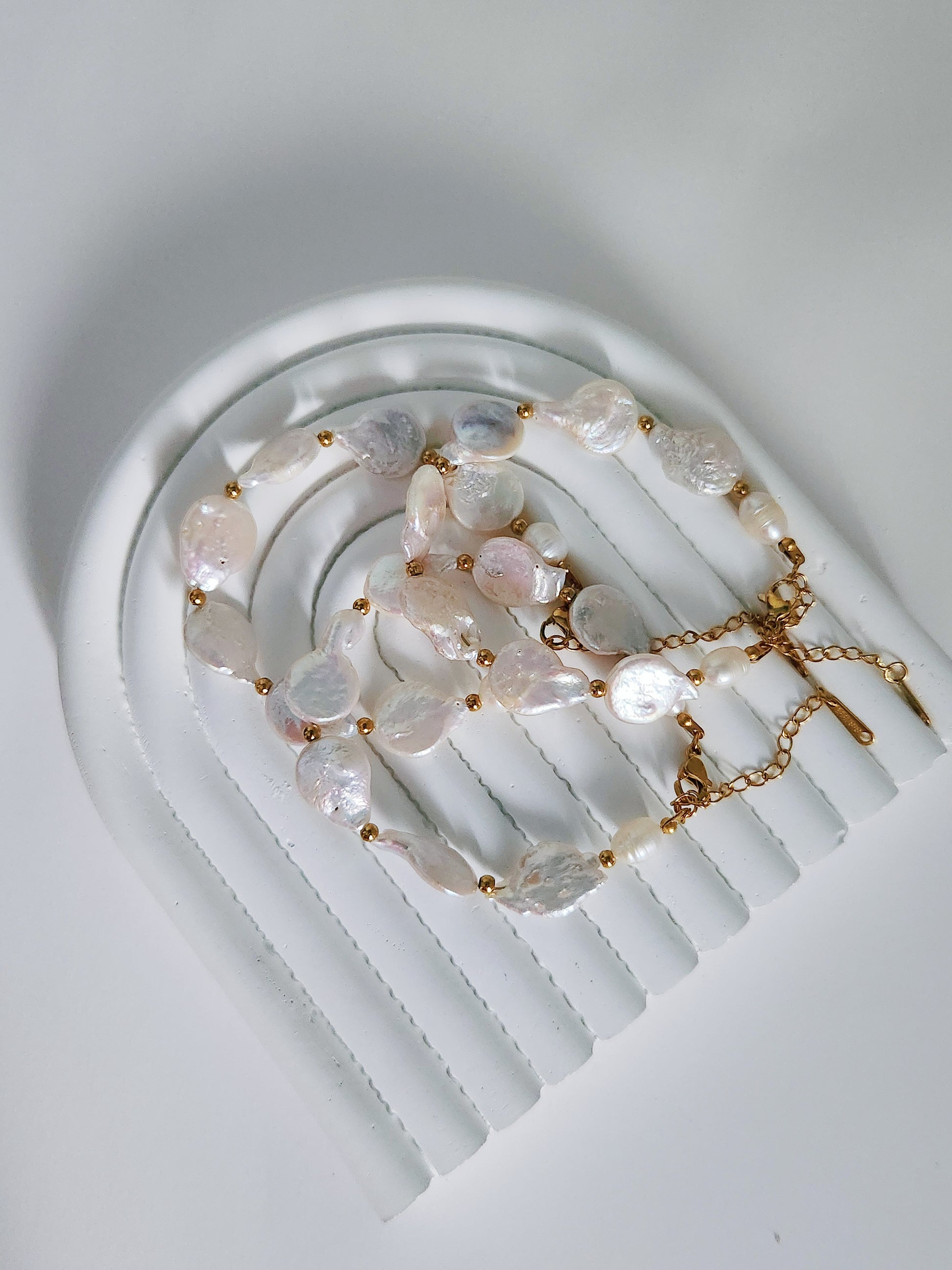 Perlas barrocas naturales, perlas de rio, acero inoxidable